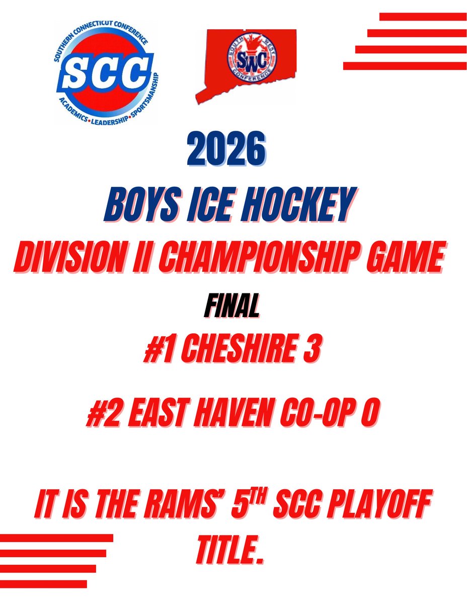 Congrats Cheshire - 2026 SCC/SWC Division II Boys Ice Hockey champions #cthk #SCC #ChasingBanners