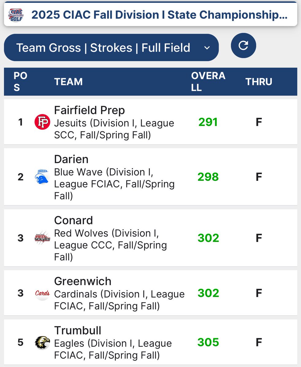 Congratulations to Fairfield Prep — the 2025 CIAC Division I Fall Golf State Champions! 🏆⛳️