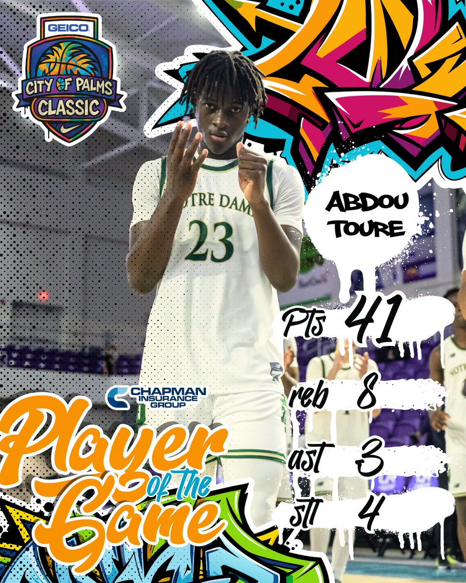 The 4 Star hooper (Ranked 34 by ESPN) does it in every aspect of the game! His Notre Dame squad held off Olympia 75-61 in the Sunshine Series SemiFinal at the City of Palms Classic.
