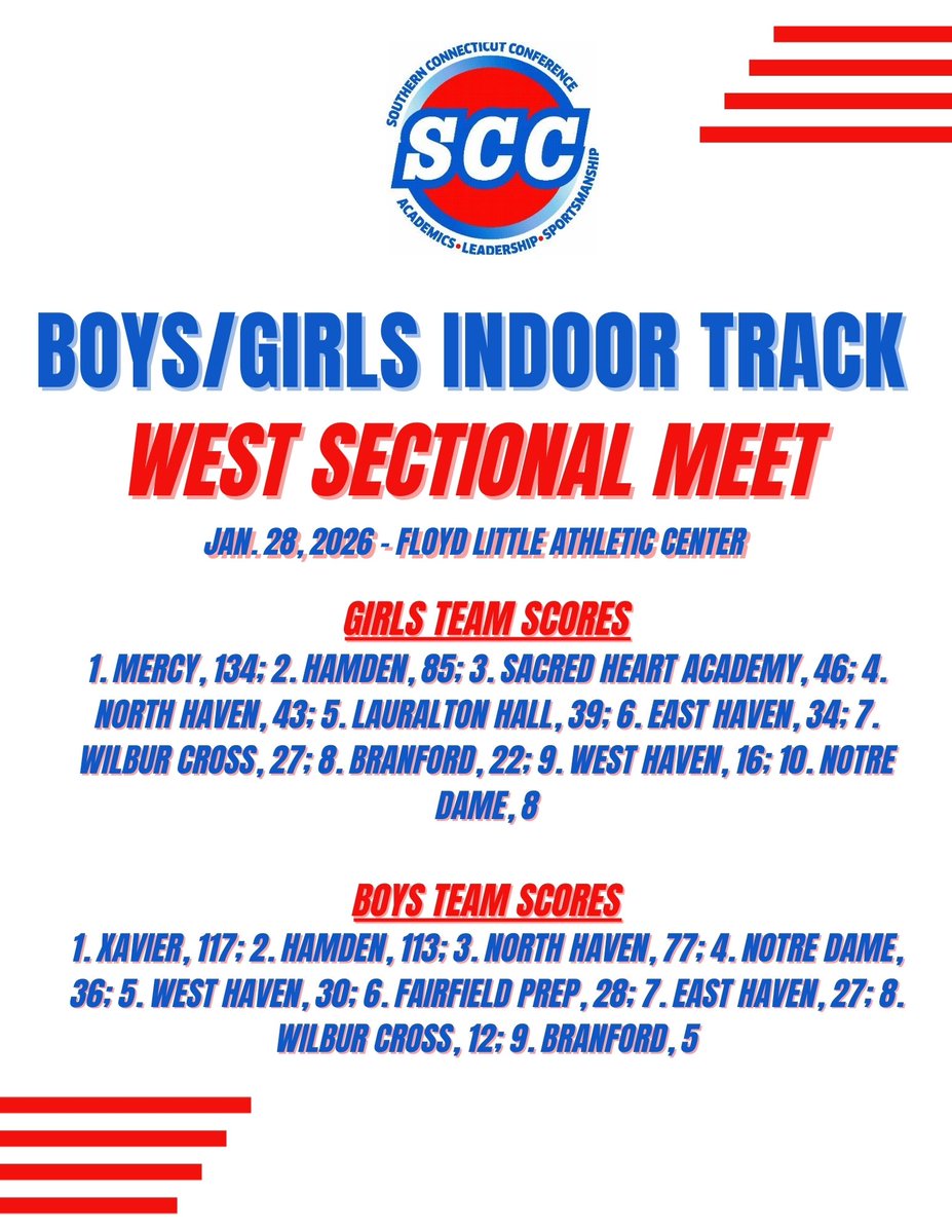 SCC Boys/Girls Indoor Track WEST Sectional meet - 4:30 p.m. at Floyd Little Athletic Center #cttrack #SCC #chasingbanners