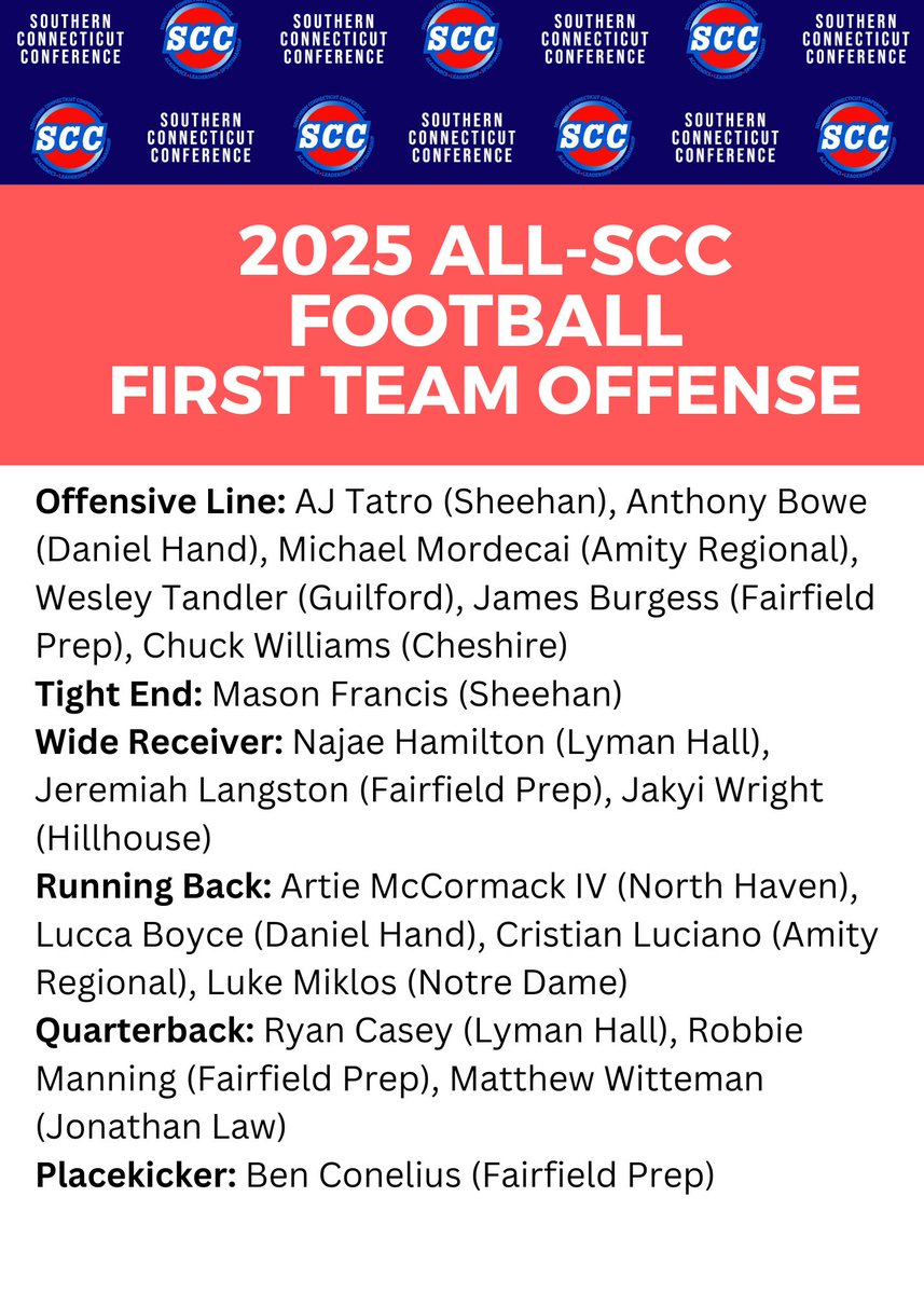 Here are the 2025 All-SCC Football First and Second Teams, as voted by the league's head coaches #cthsfb