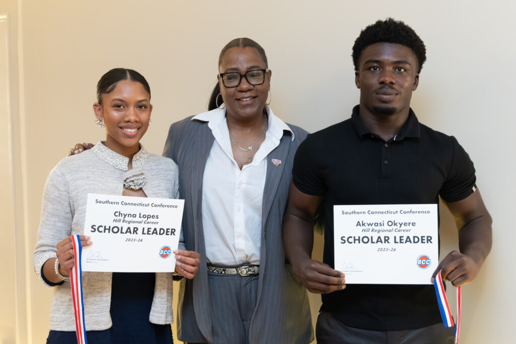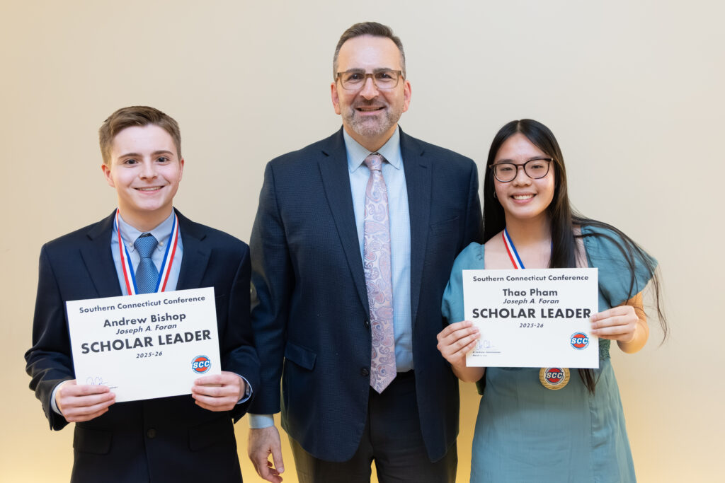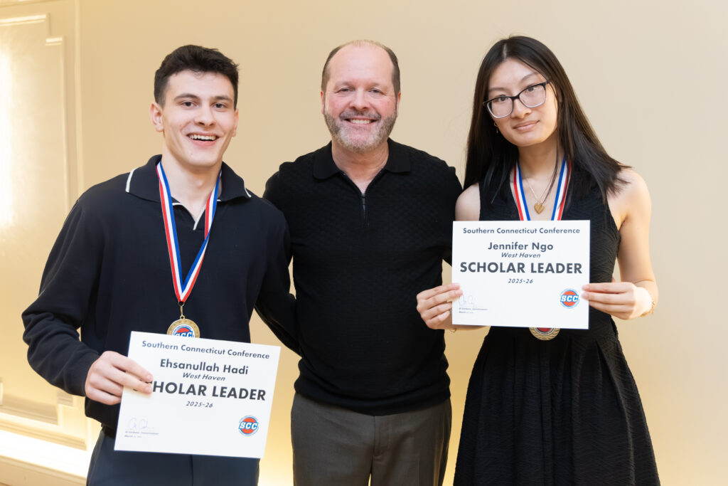Forty-six students were recognized and honored as “SCC Scholar Leaders” at a banquet at Anthony’s Ocean View in New Haven on Monday, March 30. The Scholar Leaders, as selected by their respective schools’ principal, have demonstrated outstanding scholarship and leadership in their respective school and external communities.