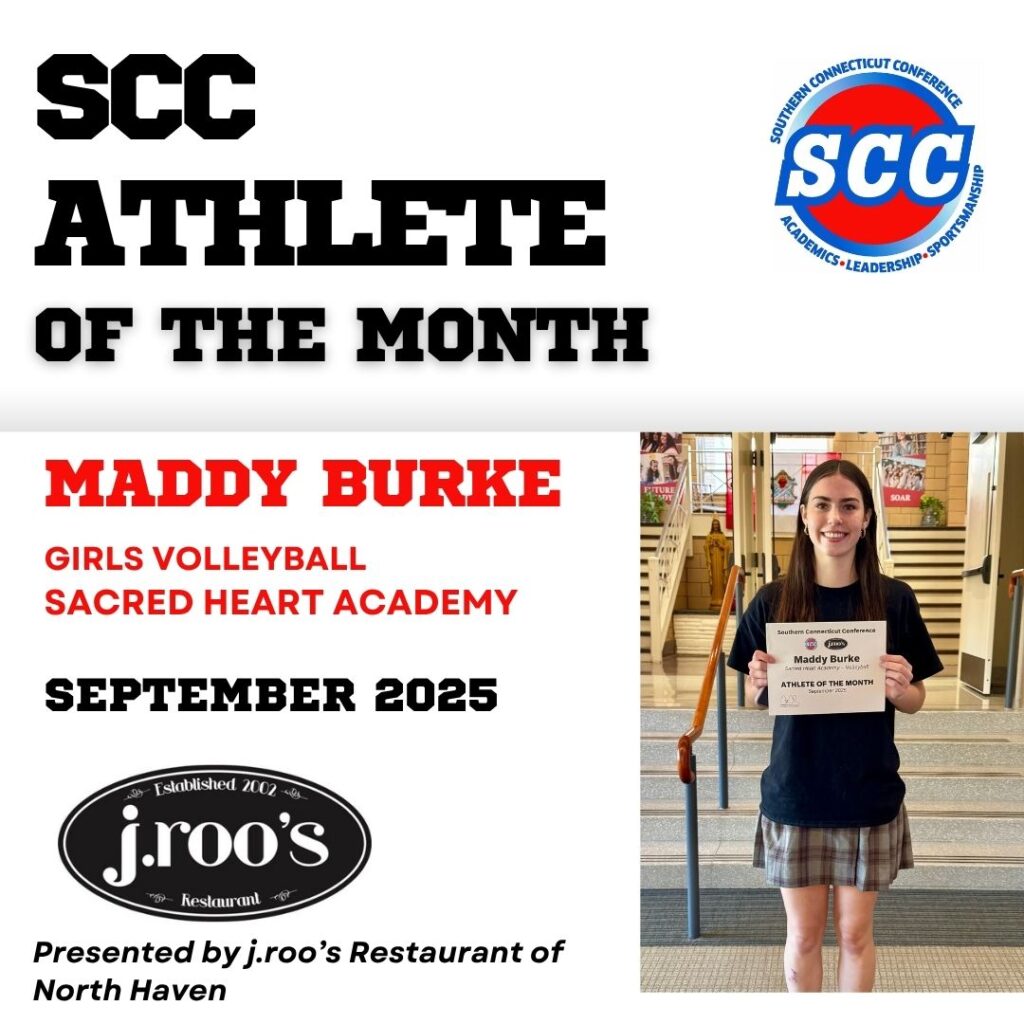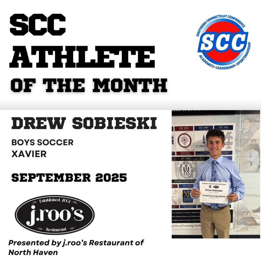 The Southern Connecticut Conference, with the support of presenting sponsor j.roo’s of North Haven, is naming a female and male athlete of the month during the academic year. It is the fourth year that j.roo’s has sponsored the Athlete of Month award. Each recipient receives a certificate and $25 gift card to j.roo’s. j.roo’s is located at 243 State Street in North Haven.
